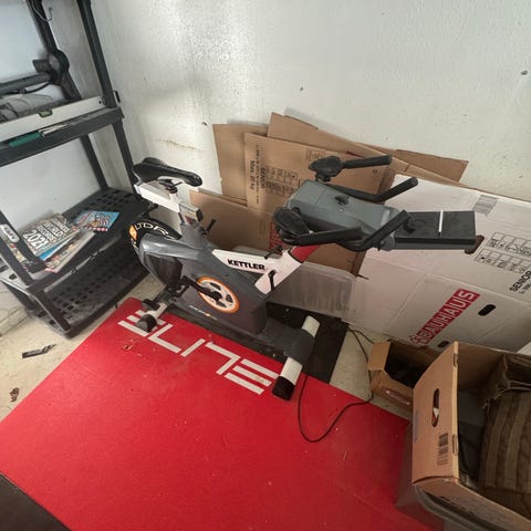 Sælges da man skal sidde for foroverbøjet og den ene af os har en dårlig arm. Den skal nok strammes da den ikke er brugt længe. Inkl computer. Den har en smart måde den laver vægten på i hjulet foran og er egentlig super. Nu har vi bare ikke brugt den længe så skynd dig at få glæde af den (og giv os glæden af mere plads)