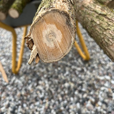 Dekorationsobjekt naturlavet af træ, formet som en gren, den sorte farve er forårsaget af grenens ophold i mosejord gennem meget lang tid.