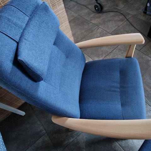 Farstrup otium stol søger ny ejer. Stolen 1,5 år gammel og er derfor i god stand. Stoffet er grøn/blå og et mørkt stel.