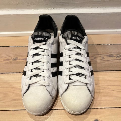 Adidas sneakers i størrelse 44. Skoene er hvide og designet til almindelig brug.