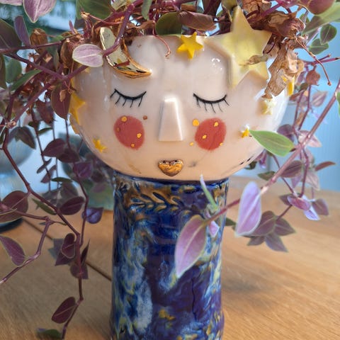 Keramisk dekorationsfigur med blomster