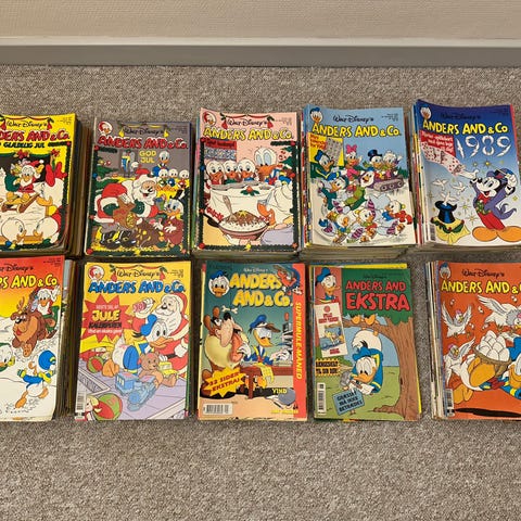 Hej. Jeg sælger min Anders And & Co.-tegneseriesamling. Omkring 40 kg og ca. 593 blade. Jeg vil tilføje en liste med alle de årgange, jeg har, samt hvert eneste nummer, jeg ejer. Kom med bud, og jeg kan også sælge enkelte årgange.