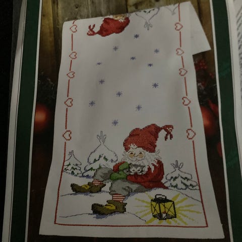 Löpare 1824 Vilostund broderisæt med design af E. Noack. Færdigt mål cirka 27x75 cm. Materialet er Aida 5,4. Sættet indeholder mønster, garn i flere farver og nødvendige materialer til broderi.