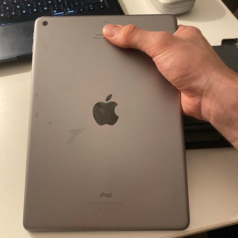 Apple iPad tablet med 128 GB lagerplads. Enheden har sort farve og en skærm, der egner sig til forskellige digitale anvendelser.