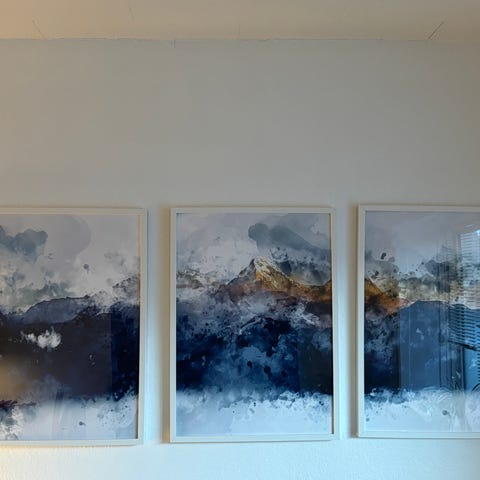 Hvert billede måler 22 x 31 cm (incl. ramme).