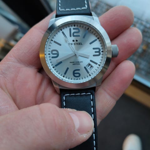 TW Steel T55 herre ur med kronograffunktion. Uret har en urkasse i rustfrit stål og en sort rem. Vandafvisende design med tydelige urskiver og flere funktioner til tidsmåling.