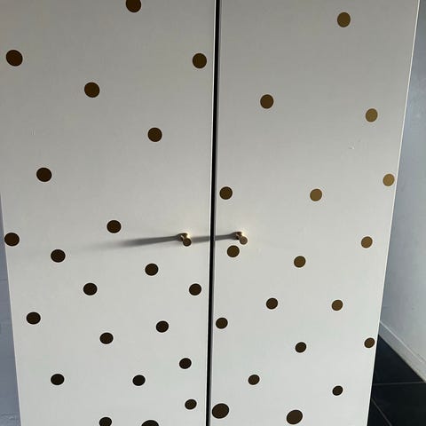 2 stk. GODISHUS garderobeskabe sælges. Mangler de originale klistermærker, der er til gengæld 2 spejle (klistret på) på det ene, som jeg ikke selv tør forsøge at tage af. Sælges begge for 200 kr, eller 100 kr. pr. stk. Kan hentes i Borup.