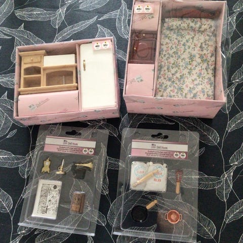 Miniature kommode med spejl og marmorplade. Dukkehusmøbler