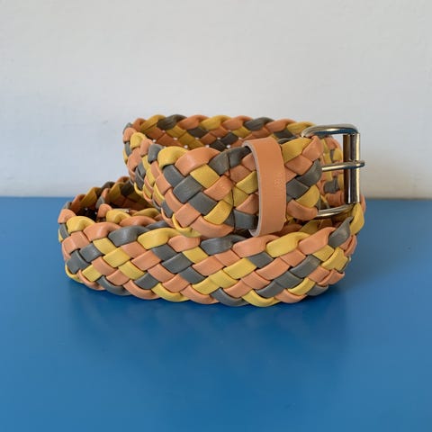 Basler kvinde bælte i brun læder med krokodillepræg og guldfarvet metalspænde. Bæltet har justerbare huller til tilpasning af størrelse. Længden på bæltet er 105 cm.