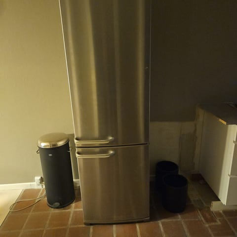 Hvid Bosch skabsfryser H: 173,5 cm og B:66 cm i god stand. Der er 5 skuffer og to hylder med låge. Der er en revne i den ene låge, den ene “fod” er løs og plastgitter forneden sidder løst.