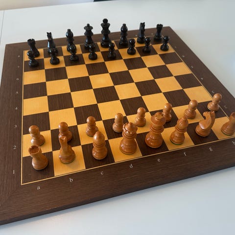 Sæt af træ skakbrikker kongen er 7 cm. Kan sendes