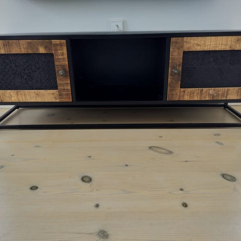 TV-bænk / mediemøbel i metal og betonlook – pæn stand