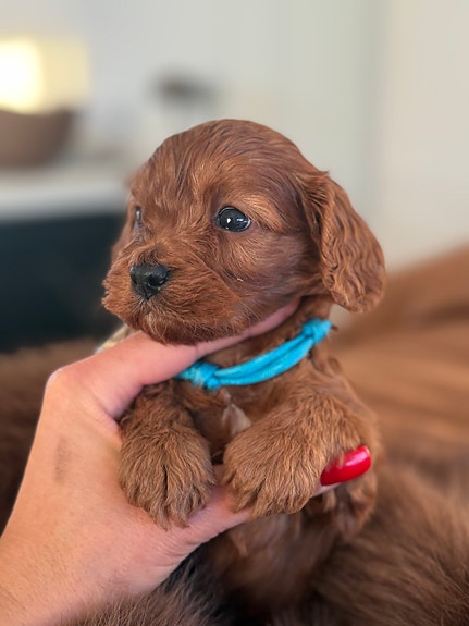 Faren er en rød (Red) Toy Poodle, som ligeledes har fuld genetisk sundhedstest.