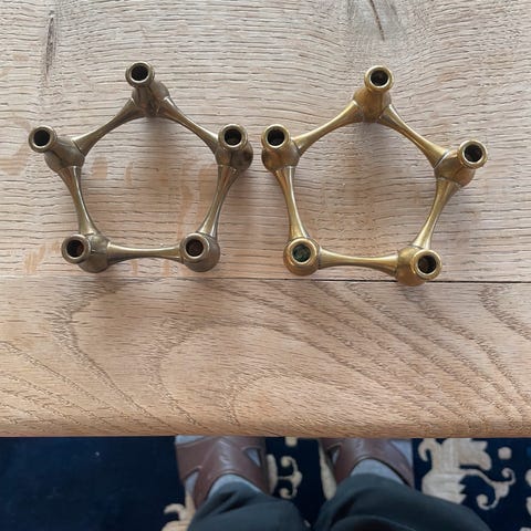 Iittala lysestage i messing med et rundt design og plads til seks lys. Lysestagen har en stilren og funktionel konstruktion, der passer til forskellige indretningstyper.