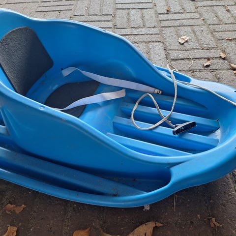 Hej stiga slæde med rat og højere sedel. Kan godt køre og skal lidt limes i seddel.