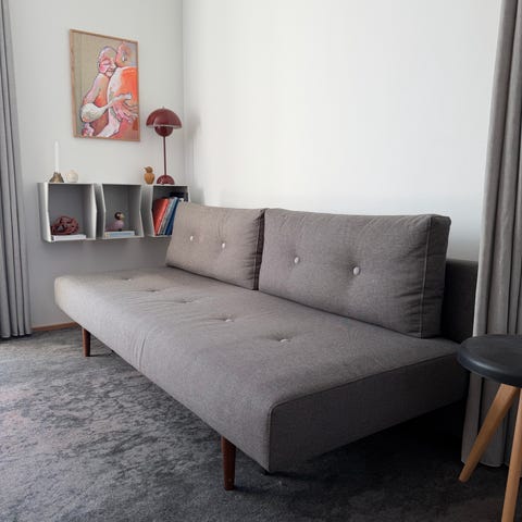 BYD! Flot og velholdt sovesofa str. 140x200 (udslået). Mørkegrå. Ryghynder ikke brugt. Der har altid været topmadras på. Ingen pletter eller huller. Der er mindre brugsspor i affjedringen i midten. Ikke-ryger hjem. Nypris 6.500.