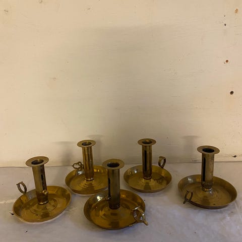 5 meget fine og forskellige messing karle kammerstager. 1,2,3 koster 75 kr/stk