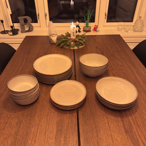 IKEA Gladelig Service. 2 kopper, 4 små tallerkener og 4 små skåle. Pris for hele sættet: 150 kr.