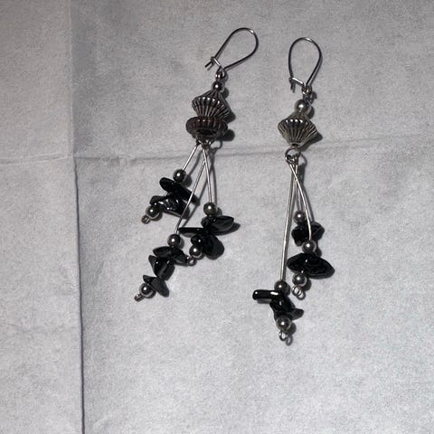 Øreringene er oxyderede og med 6 rækker hængende perler.