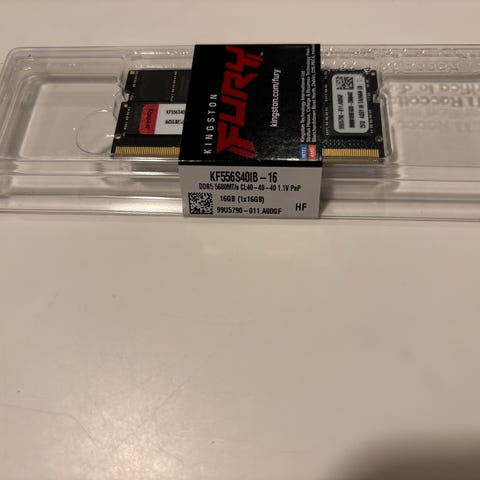 Jeg sælger disse 2*16GB Kingston Fury DDR5 RAM med 5200Mhz.