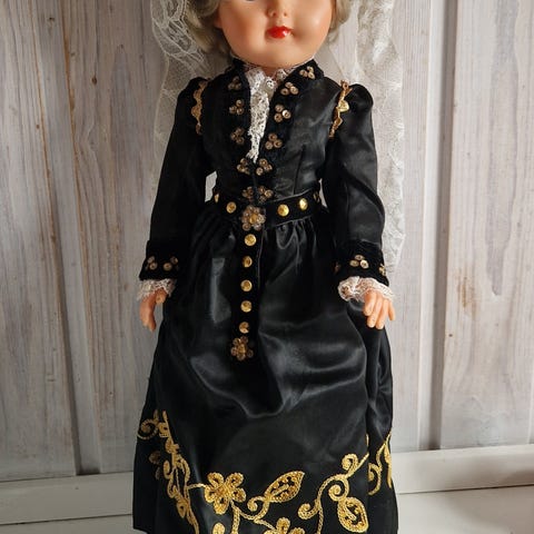 Viking dukke med hjelm med horn, blå kappe og gråt skjold. Dukken har detaljer som gult bælte og udtryksfuldt ansigt med store øjne og tænder. Velegnet som samlerobjekt eller pynt.