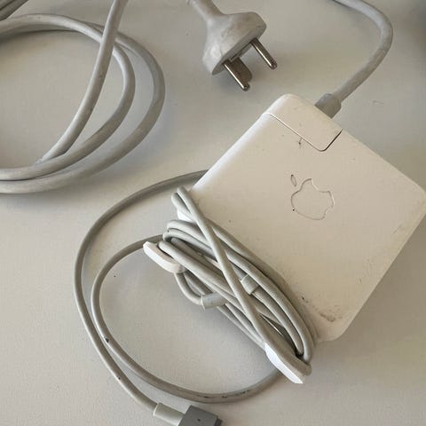 Macbookoplader med hvid kabel og stik. Virker fint til f.eks. MacBook Air 2017 men er blot tilovers - se billede for specifikationer på enheden :-)
