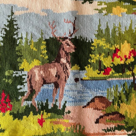 Dimensions Gold Collection Northern Night gobelin broderi med motiv af nordlys, skov og elg. Størrelse 40,6 x 27,9 cm. Indeholder broderitråd i forskellige farver og mønstervejledning.