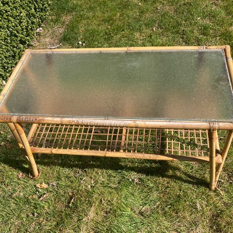 Bambus glasbord. bambusbord. Bambus havebord. Bambus Lampebord. Indretning. dekoration. bambus sidebord. Bambus sengebord. Sengebordssæt. Bambus blomsterbord. new nordic living. back to nature. Bambus bord med glasplade og hylde. Glasbord i bambus. Vintage bambus. rattan glas bord. Bambus møbel. Rattan møbel. Rattan glasbord. Hvidt bambusbord med glasplade. Sidebord i naturmaterialer. Hvidt bambus pyntebord.
