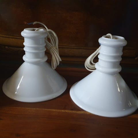 Fin porcelænspendel. Med fatning og ledning. Fin stand - ingen skår eller revner. Fra ikke-rygerhjem.