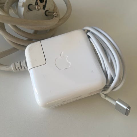 Macbookoplader med hvid kabel og stik. Virker fint til f.eks. MacBook Air 2017 men er blot tilovers - se billede for specifikationer på enheden :-)