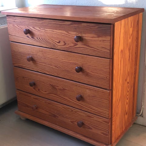 Kommode med tre skuffer. Det hele af træ, så heller ingen køre-skinne, der kan gå i stykker