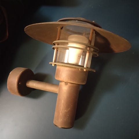 2 stk. Massive Red Copper udendørs væglampe i kobbermateriale. Lampen er designet til montering på væg og egner sig til udendørs brug. Pris er for begge.