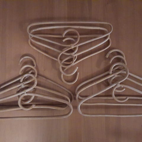 8 retro / vintage bambusbøjler sælges samlet. De er stort set ikke brugt, og de er nærmest fejlfri bortset fa en enkelt, hvor en binding er løs. Måler 42X23 cm.