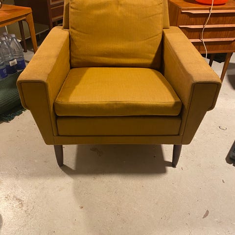 Retro lænestol fra 1950erne rattan og stål stel med teak fødder