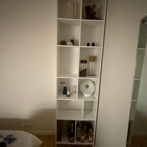 Sælger denne flotte hængende bogreol fra Bolia i valnøddetræ
