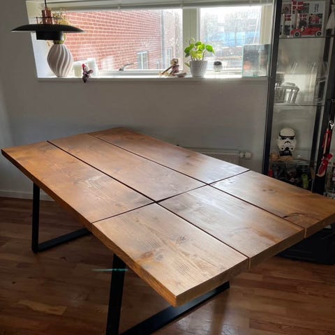Velholdt specialdesignet spisebord. Bordplanker i massiv valnød fra Wood by Works og pulverlakeret fod i pulverlakeret rustfrit stål designet og svejset af Benny Sørensen.