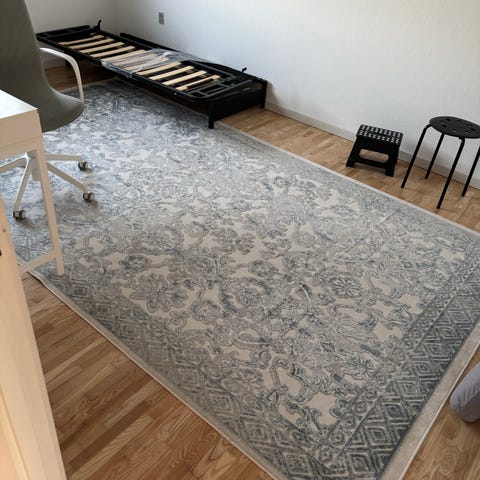 Tæppet er rent og i fint stand – uden pletter, uden mærker fra møbler og kommer fra et røgfrit og husdyrfrit hjem.