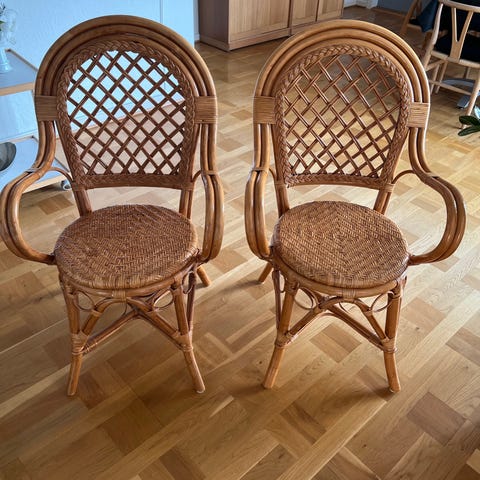 Kurvestole / fletstole (2 stk.), hynder medfølger. Mål - B:72cm, D:62cm, H:79cm. God stand. Kan afhentes Ryomgård 8550. Samlet pris.
