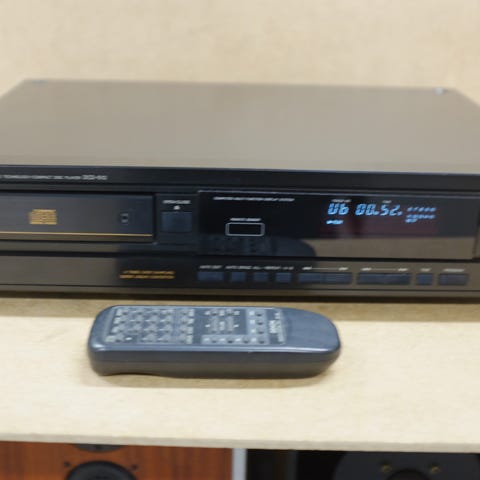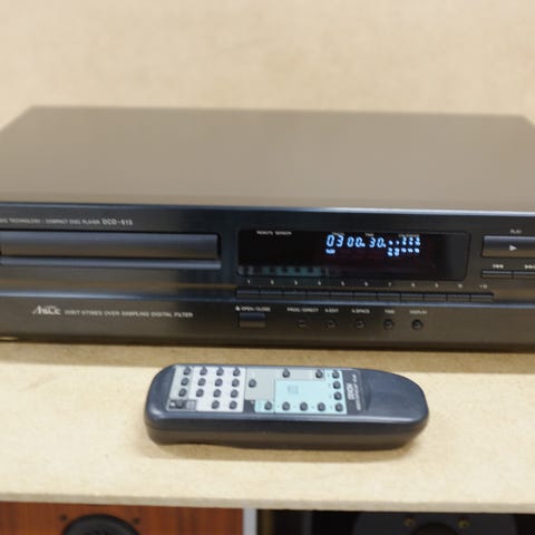 Denon CD-afspiller med sort finish. Enheden har frontmonterede kontrolknapper og tilslutninger til lydudgang. Velegnet til afspilning af CD-medier i hjemme- eller kontormiljø. Den er uden fjernbetjening.