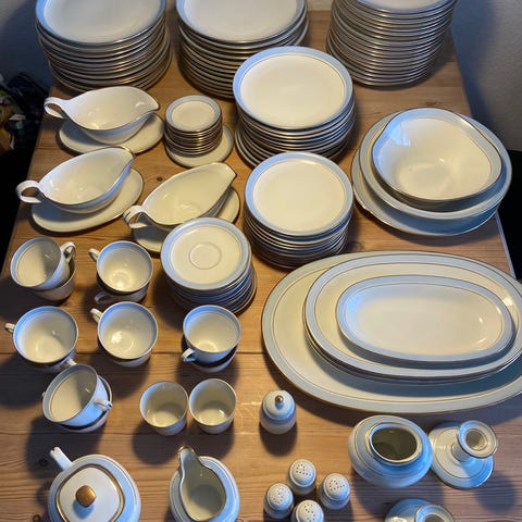Smukke velbevarede dele i spisestellet Fredensborg dekoreret af KPM Kjøbenhavns Porcelains Maleri A/S