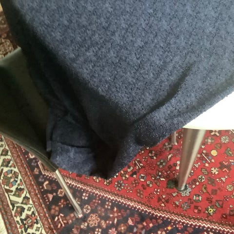 Gætter på at stoffet er en blanding af bomuld, viskose og elastiske. Det er strækbart i begge retninger og tungt stof der falder pænt