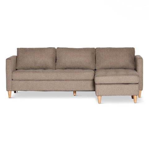 Fake suede sofa + 2 puffer. Men det er en “LUND” sofa og puffer.