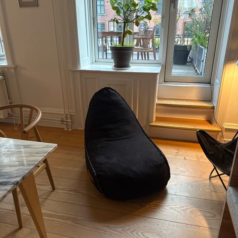 Fin sort Sackit sækkestol. Har kun stået indenfor. Brugt meget lidt. Klar til hurtig handel.