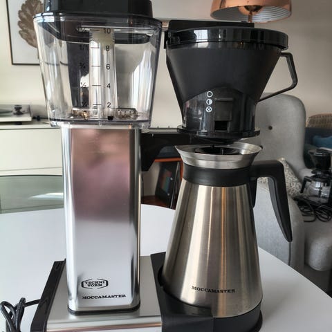 kaffemaskine med en kapacitet på 1,0 liter. Maskinen har en transparent vandbeholder og en glaskande. Den er produceret af Technivorm B.V. og er designet til at brygge kaffe med præcision.