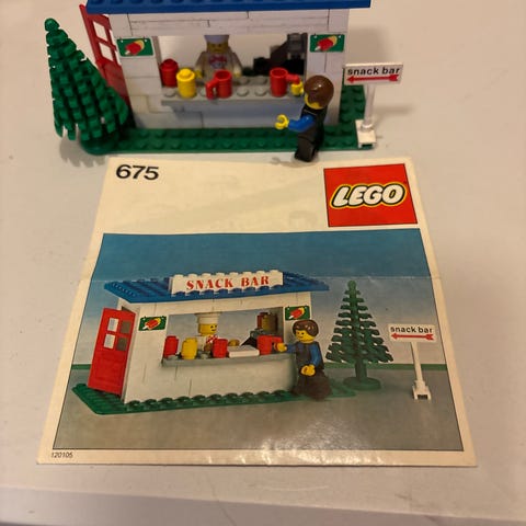 Sælger klassisk LEGO Town sæt nr. 675 – Snack Bar fra 1979.