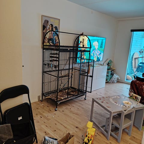 1 årlig rød Jaco med certifikat og ringmærket, sælges med bur