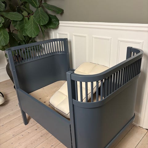 Stilfuld og funktionel seng der med sine adskillige indstillinger kan bruges fra nyfødt til juniorseng. Se produktbeskrivelse af sengen nedenfor.