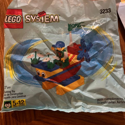 LEGO System 1761 båd med en gul figur, der har sort hår. Båden er primært lyserød med enkelte grå og sorte detaljer. Sættet indeholder også en lille motor monteret bagpå båden.