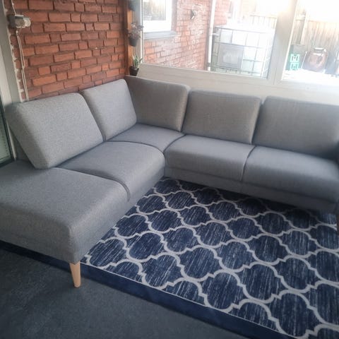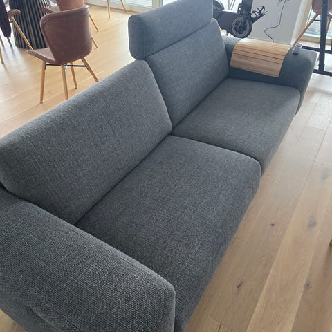 Sofaen er under 1 år gammel. Farven er mørkegrøn. Med 3 nakkestøtte. . Sofaen har også motoriseret vippefunktion/indbygget fodskammel.