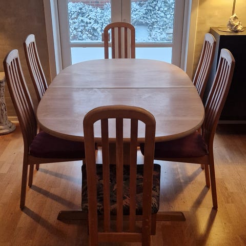 Spisebord i massiv bøg med udtræk og tillægsplader